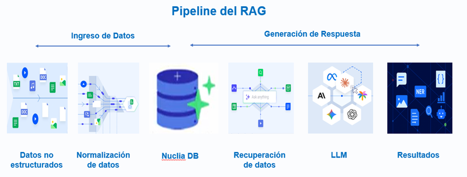 Plataforma que integra Generación Aumentada por Recuperación (RAG) con agentes de Inteligencia Artificial (IA), permitiendo a las organizaciones aprovechar la IA generativa para obtener respuestas precisas, confiables y trazables, basadas exclusivamente en datos propios.